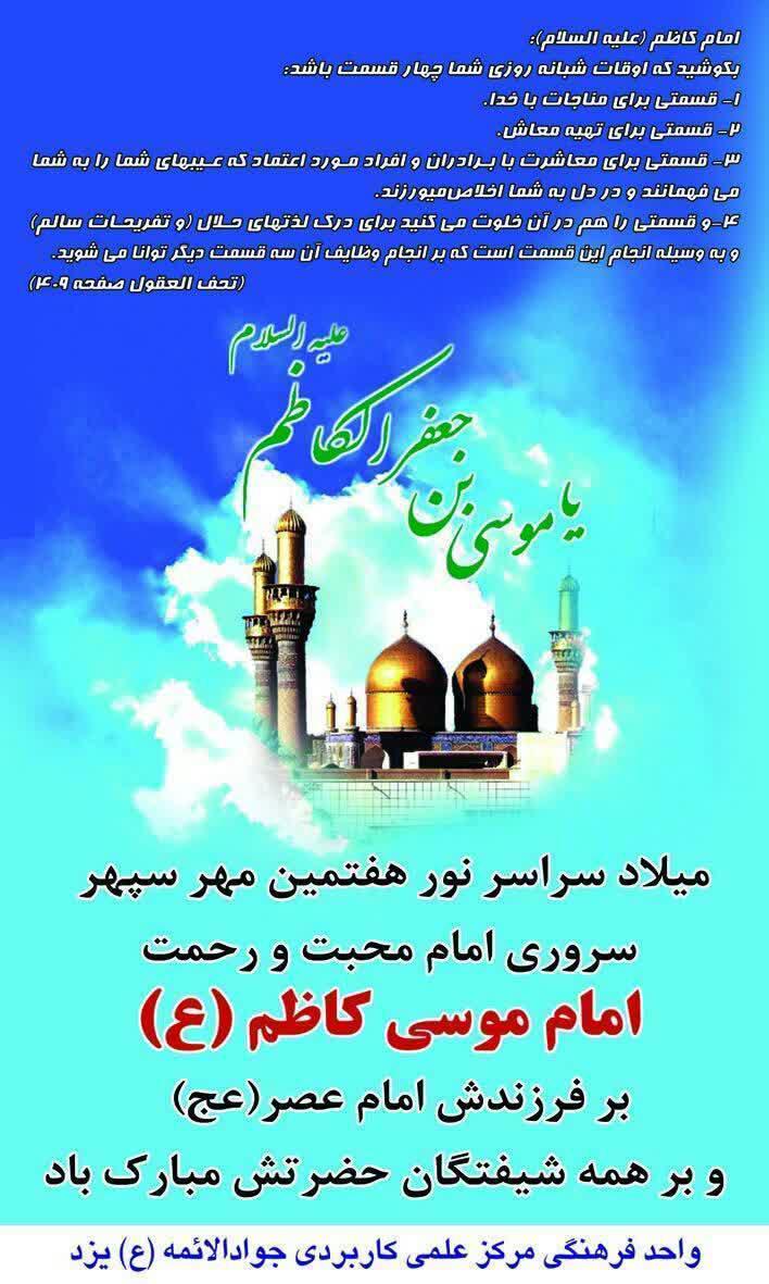 مَن لَم یجِد لِلاساءَةِ مَضَضّا لَم یکن عِندَهُ لِلاِحسانِ مَوقعٌ کسی که مزه رنج و سختی را نچشیده، نیکی و احسان در نزد او جایگاهی ندارد. ولادت امام موسی کاظم را به همه ی شما دانشجویان و فرهیختگان علم و دانش تبریک می گوییم.